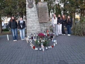 W dniu 31.10.2025 roku dziewczęta ze szkolnego koła PCK włączyły się do akcji “Znicz”. Uczestniczyły w sprzątaniu grobów poległych żołnierzy na cmentarzu przy ul. Gostkowskiej. Dziewczęta grabiły liście, porządkowały groby i zapaliły znicze pod pomnikiem poległych formując serce. Opiekunem była p. Konopka.
